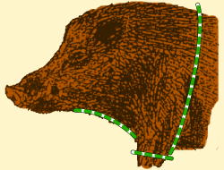 Bei Schwarzwild Schnitt an der Halsunterseite. Beim übrigen Schalenwild Trägerhaut oben aufschneiden.